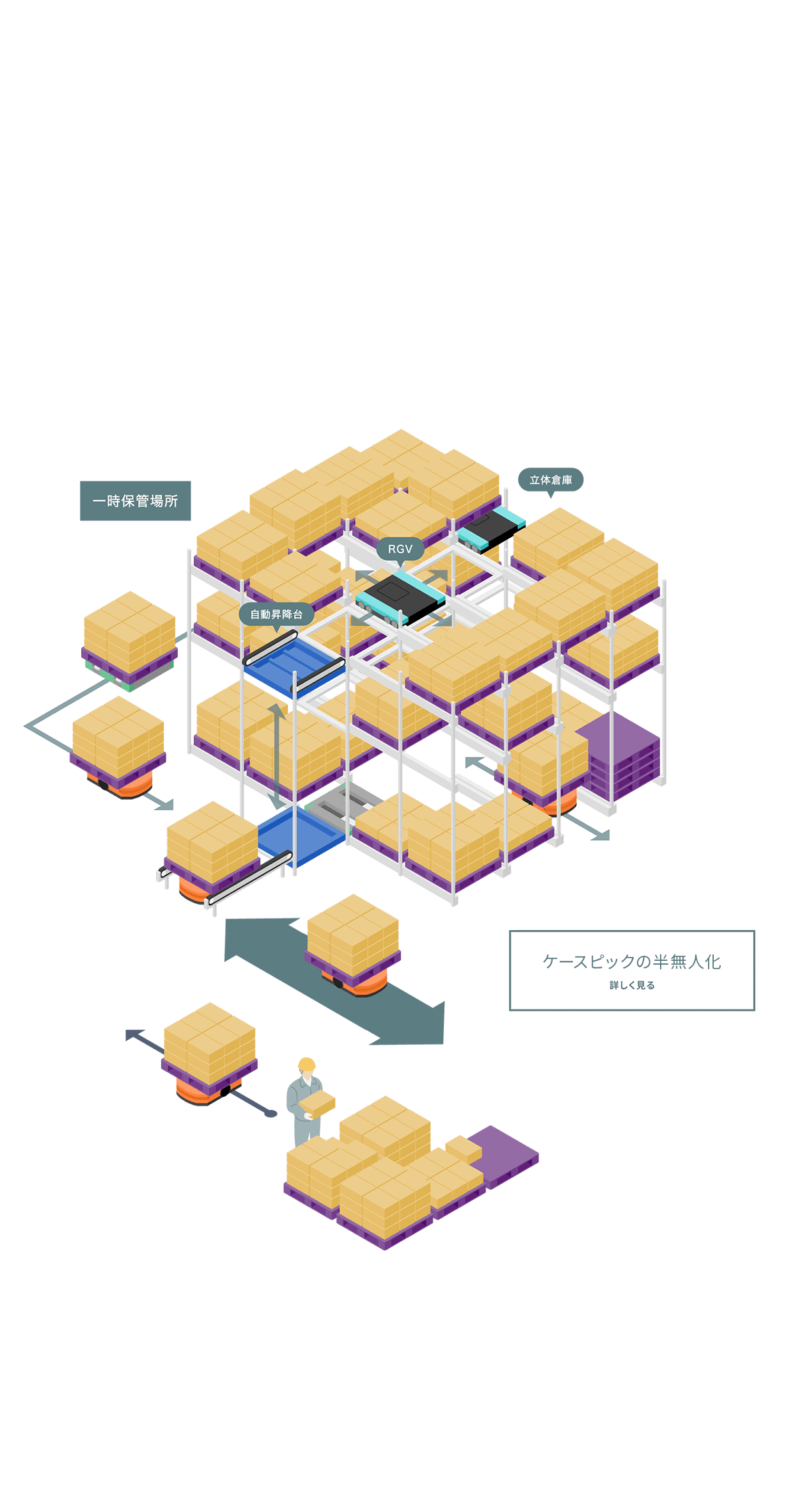 半無人化 RGV / AGVRGVとAGVを活用し、