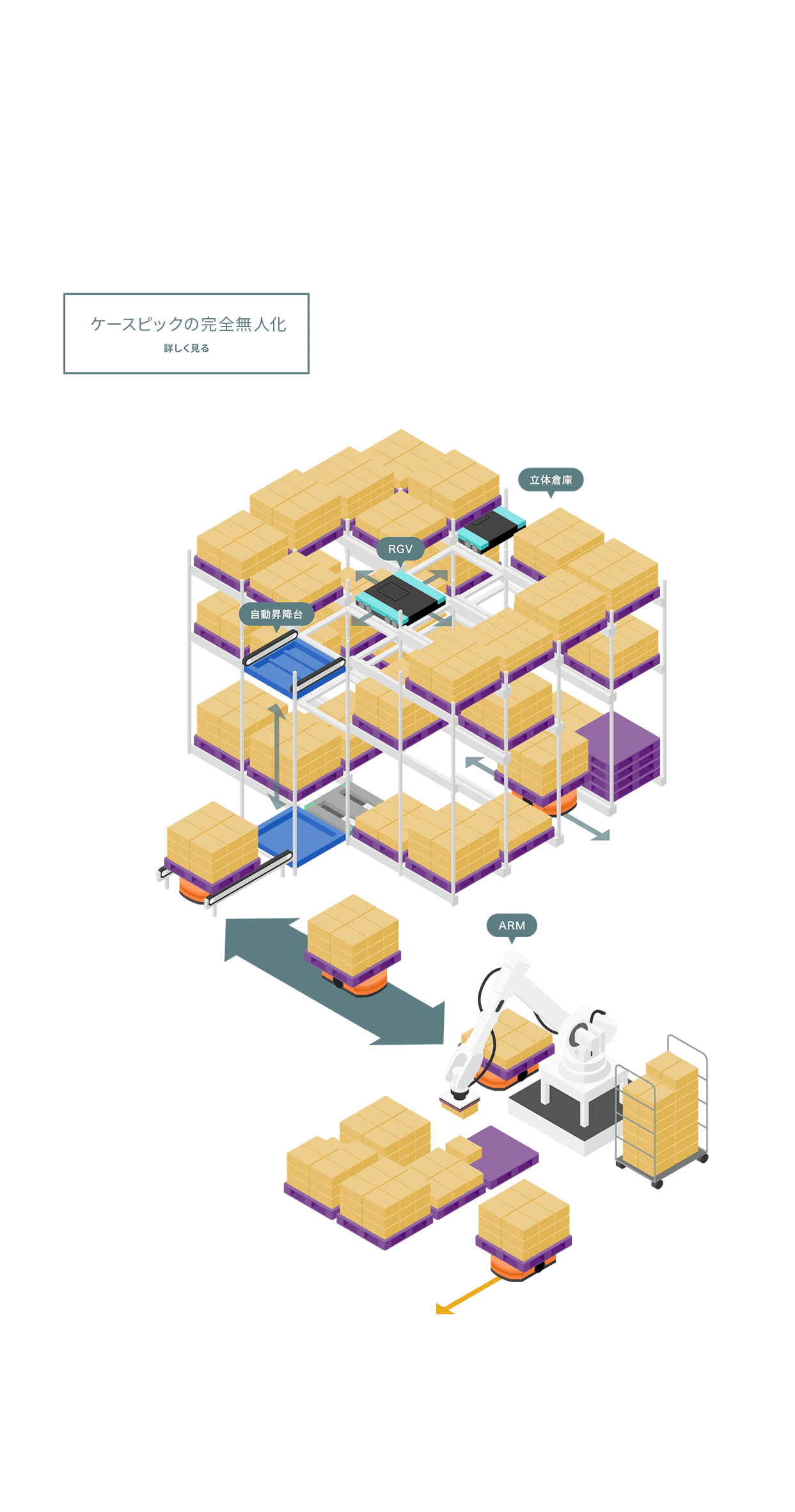 Chinoh.Ai社のソリューションにより、ケースピッキングの全て(入出庫、保管)が完全無人化できました。製造業新工場にAGFとRGVを導入